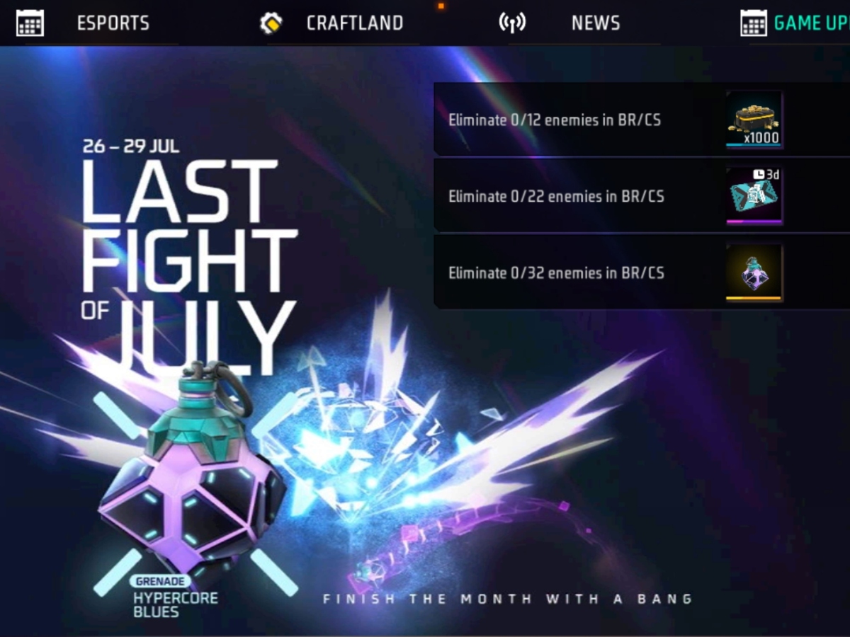 Free Fire Max में कई गेमिंग इवेंट लाइव हैं। इनमें से एक Last Fight Of July है, जिसमें 500 से ज्यादा गोल्ड कॉइन फ्री में दिए जा रहे हैं। इनके साथ Hypercore Blues ग्रेनेड एक्सप्लोजन एनिमेशन मुख्य रिवॉर्ड के तौर पर दिया जा रहा है। अगर आप यह बैटल रॉयल गेम खेलते हैं और कॉइन व एनिमेशन मुफ्त में पाना चाहते हैं, तो यह आर्टिकल आपके मतलब का है। यहां हम आपको इवेंट से जुड़ी पूरी डिटेल विस्तार से देने वाले हैं।