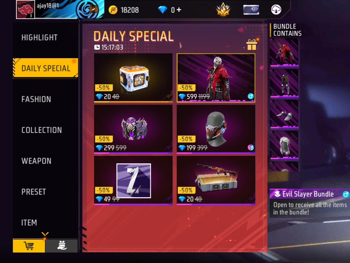 - Evil Slayer बंडल की असली कीमत 1199 डायमंड है। इसे डेली स्पेशल से 599 डायमंड में अनलॉक किया जा सकता है।