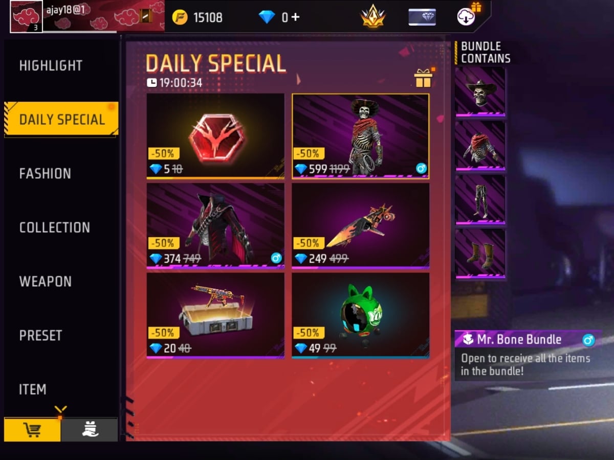 2. Mr. Bone बंडल की असली कीमत 1199 डायमंड है, मगर डेली स्पेशल से इसे 599 डायमंड में अनलॉक किया जा सकता है।