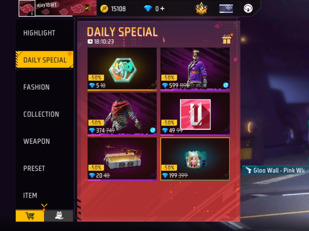 Free Fire Max के Daily Special में Pink Wink ग्लू वॉल स्किन मिल रही है। इसे आप आधे दाम में अनलॉक कर सकते हैं। इसके अलावा, King Boxer Bundle जैसे अनेकों आइटम को भी पाने का अवसर मिल रहा है।