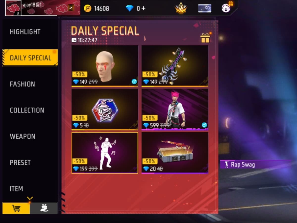 Rap Swag Emote की ओरिजनल कीमत 399 डायमंड है, लेकिन यह डेली स्पेशल में 50 प्रतिशत की छूट के साथ केवल 199 डायमंड में मिल रहा है।
