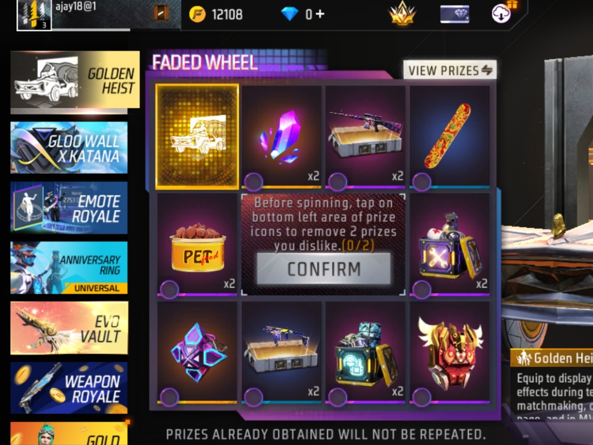 इवेंट में मिलने वाले आइटम को क्लेम करने के लिए गेमर्स को सबसे पहले उन आइटम का चयन करना होगा, जिन्हें वे पाना नहीं चाहते हैं। इसके बाद वो आइटम रिवॉर्ड लिस्ट से हट जाएंगे। अब स्क्रीन पर 9 Diamonds वाला स्पिन बटन दिखाई देगा, उस पर टैप करते ही स्पिन की प्रक्रिया शुरू होगी और चंद सेकेंड बाद आपको रिवॉर्ड मिल जाएगा।