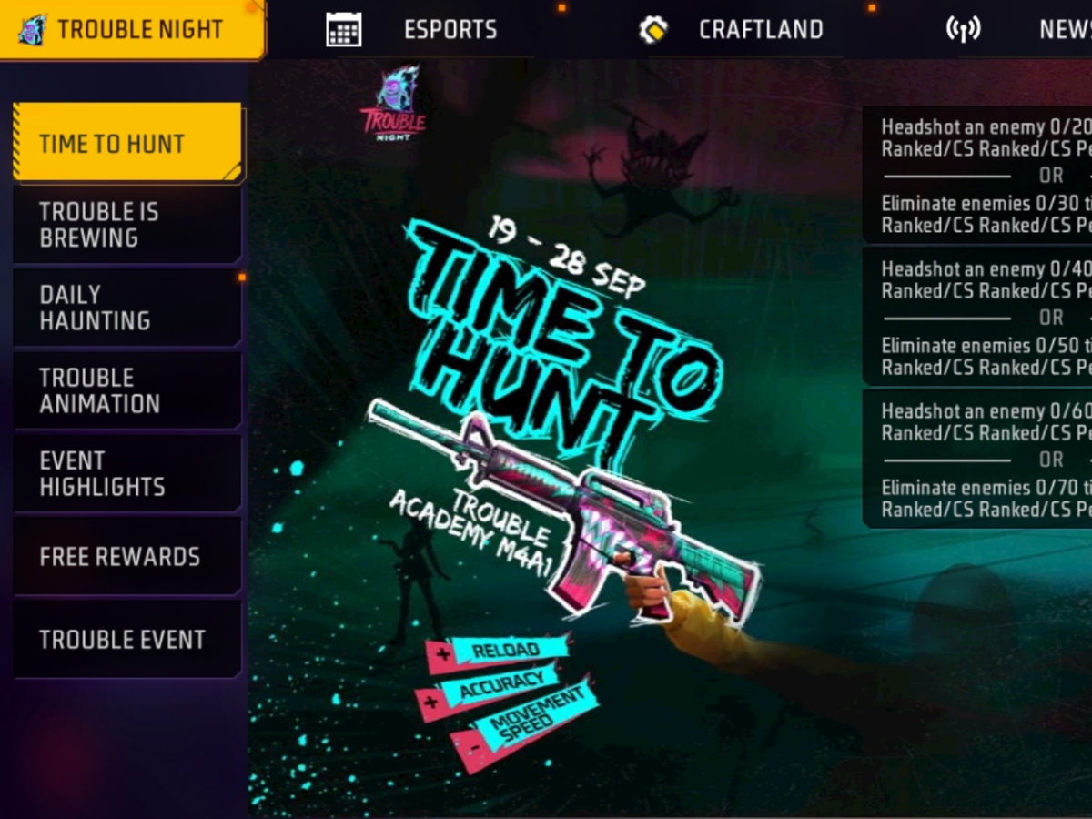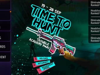 Free Fire Max में Time to Hunt एक्टिव है। इसमें What was That a Sound ? वॉइस पैक और M4A1-Trouble Academy वेपन स्किन मिल रही है, जिसे आप फ्री में क्लेम कर सकते हैं।
