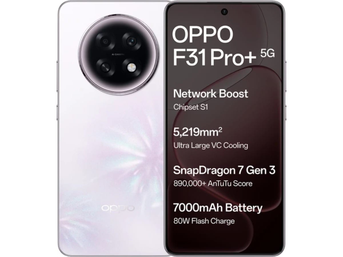 Oppo F31 Pro+ 5G उन यूजर्स के लिए है जो स्टाइल और मजबूती दोनों चाहते हैं। इसमें 7000mAh की बैटरी और 80W फास्ट चार्जिंग मिलती है। इसमें AMOLED डिस्प्ले मिलती है, जो 120Hz रिफ्रेश रेट को सपोर्ट करती है। इस फोन की सबसे बड़ी खासियत इसकी IP69 रेटिंग है, यानी यह पानी और धूल से काफी सुरक्षित है। FlipKart पर इस फोन की कीमत ₹32,999 है।