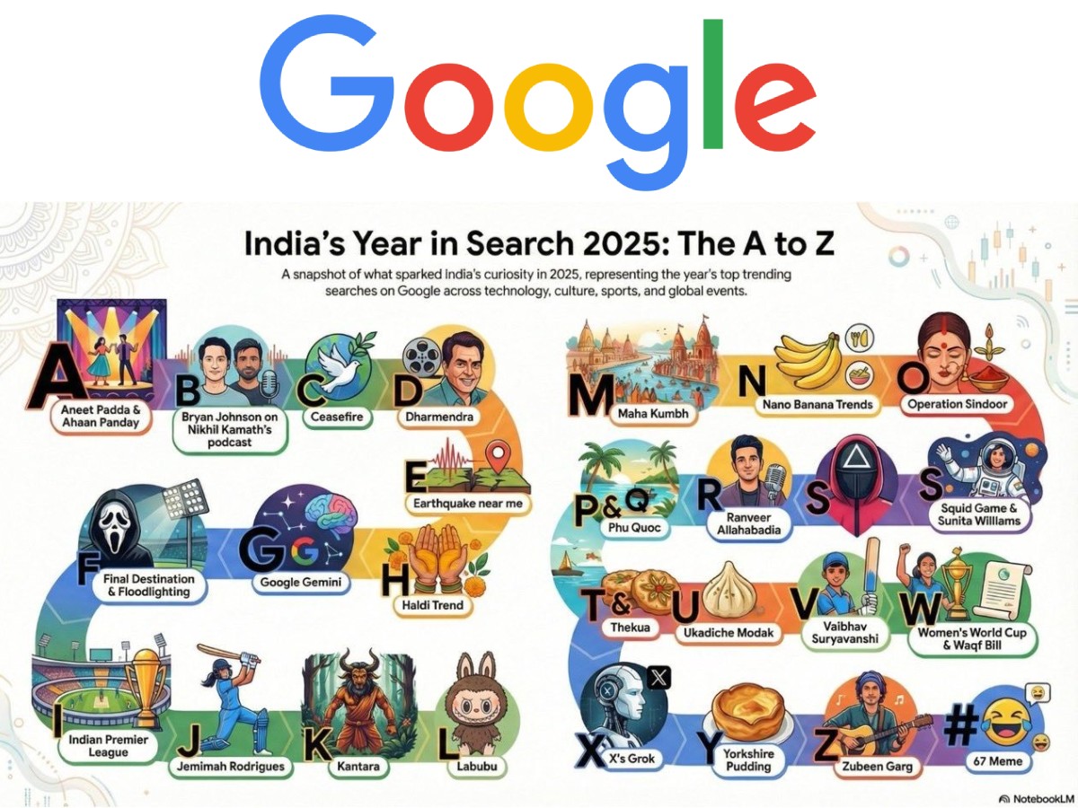 2025 में भारत ने गूगल पर क्या–क्या सर्च किया, इसकी पूरी A से लेकर Z तक की लिस्ट सामने आ गई है। इस साल लोगों की दिलचस्पी फिल्मों, त्योहारों, AI टूल्स, खाने, स्पोर्ट्स और बड़ी खबरों में सबसे ज्यादा रही। आइए जानते हैं...