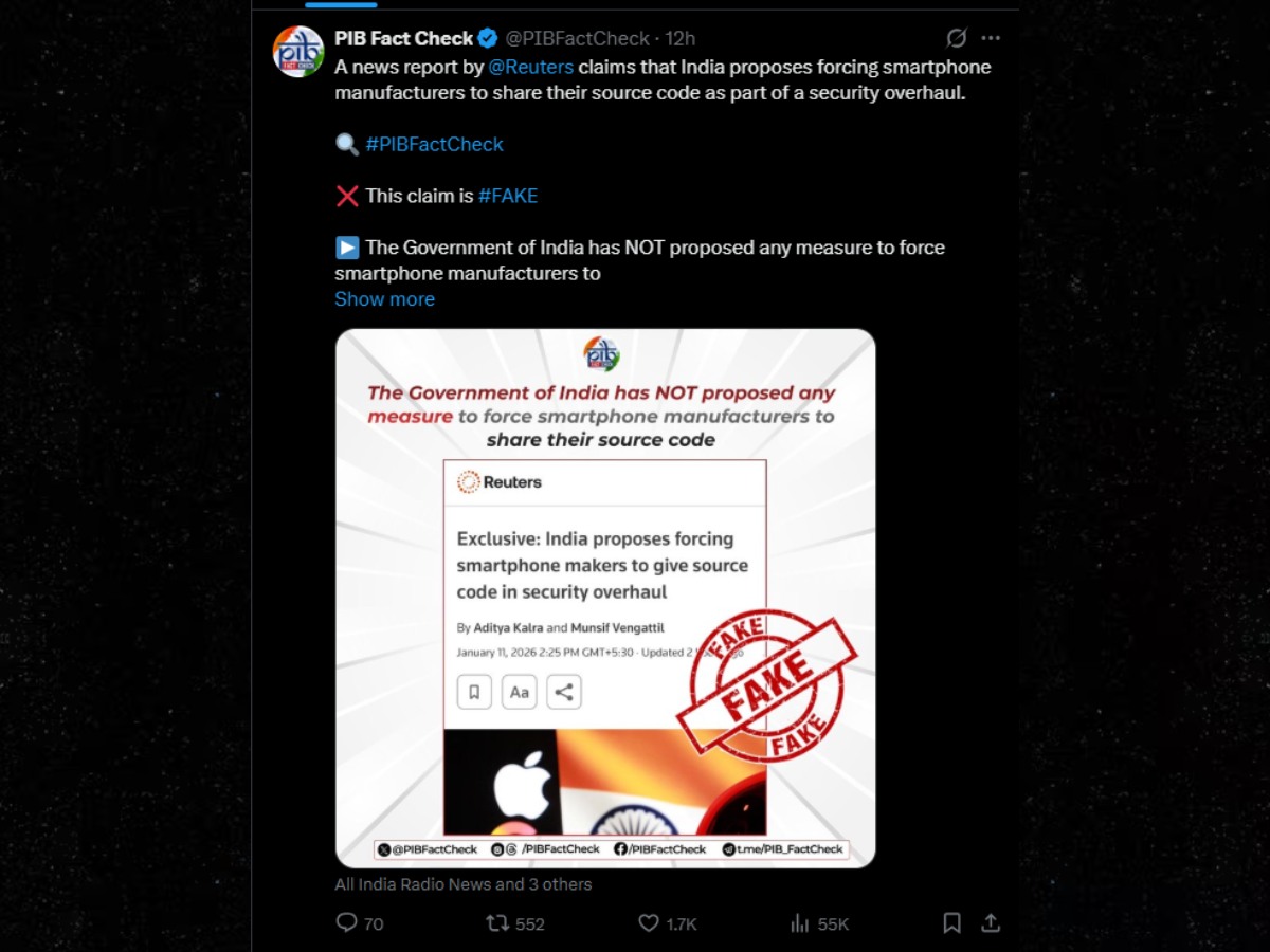 हाल ही में कुछ मीडिया रिपोर्ट्स में कहा गया कि भारत सरकार जल्द ही स्मार्टफोन कंपनियों से उनके फोन का सोर्स कोड मांग सकती है लेकिन सरकार ने इसे गलत बताया है। आइए जानते हैं...