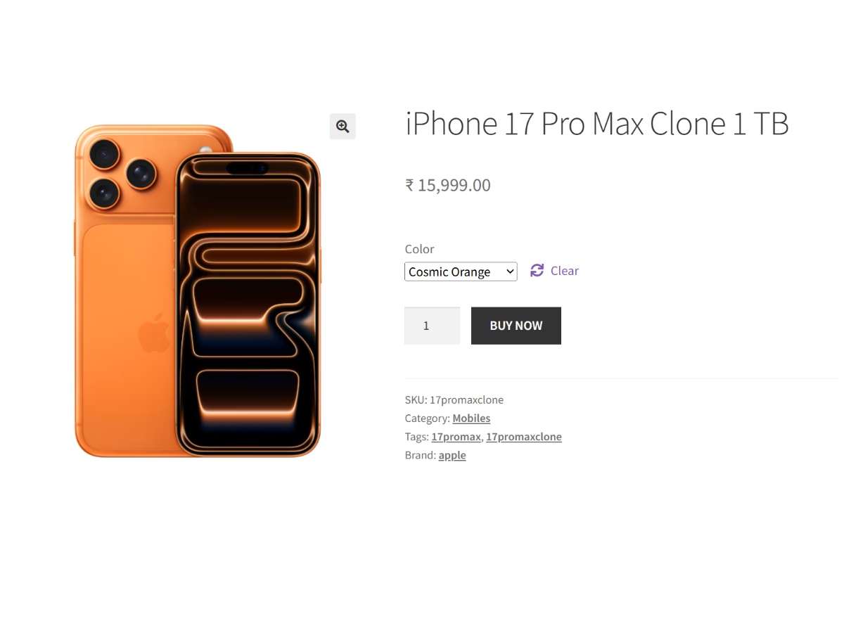 जैसे कि हमने बताया फेक आईफोन 17 प्रो मैक्स मॉडल को बेहद ही कम कीमत में खरीद सकते हैं। यह फेक आईफोन https://shophones.shop/ पर खरीद के लिए उपलब्ध है, जिसमें iPhone 17 Pro Max के 1TB के Cosmic Orange कलर ऑप्शन की कीमत महज 15,999 रुपये लिस्ट है।