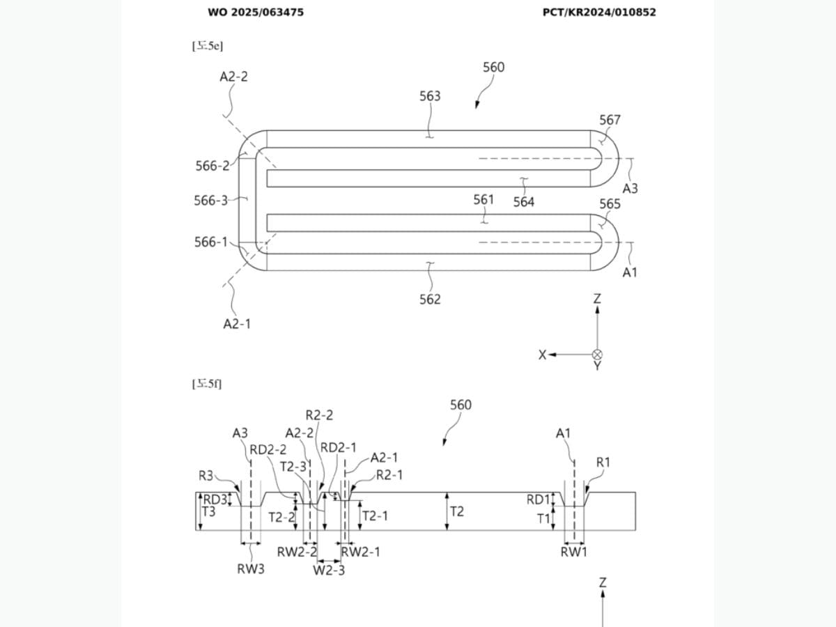बेंडेबल डिस्प्ले सहित इलेक्ट्रॉनिक डिवाइस नाम का एक पेटेंट सामने आया है। इस पेटेंट में एक डिवाइस को दिखाया गया है, जो चार क्षैतिज पैनल हैं और ये तीन हिंग से जुड़े हैं। सभी एक फोल्डेबल स्क्रीन के नीचे हैं। पेटेंट के साथ दिए गए फोटो में यह डिवाइस एक एक क्वाड-फोल्ड स्मार्टफोन की ओर इशारा कर रहा है।