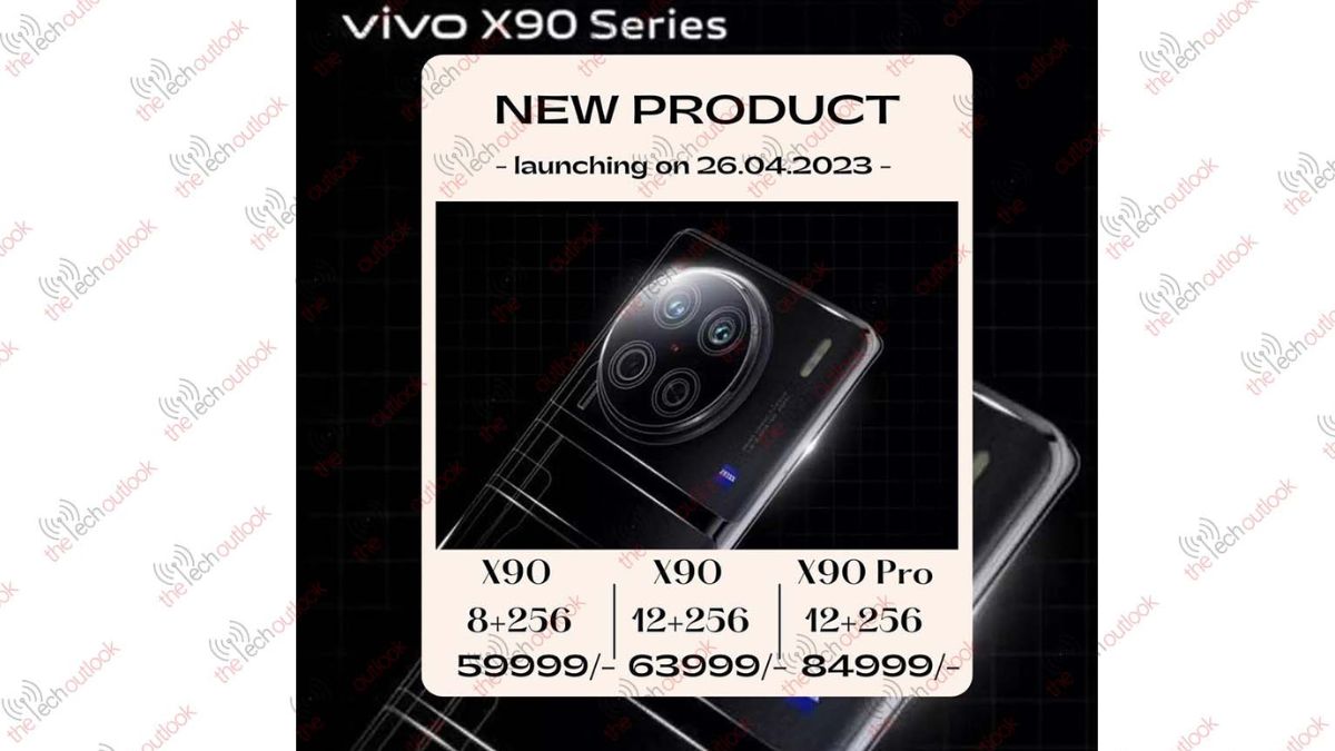 Vivo X90 सीरीज भारत में 26 अप्रैल को लॉन्च होने वाली है। इस सीरीज में दो स्मार्टफोन्स Vivo X90 और Vivo X90 Pro दस्तक देंगे। लॉन्चिंग से पहले इन स्मार्टफोन्स की कीमत ऑनलाइन लीक हो गई है। लीक में कीमत के साथ-साथ स्मार्टफोन के RAM और स्टोरेज वेरिएंट्स की भी जानकारी सामने आ गई है। बता दें, भारत से पहले यह सीरीज पिछले साल नवंबर में चीन में दस्तक दे चुकी है। भारत में लॉन्च के बाद इनकी सेल Flipkart पर उपलब्ध होगी। आइए जानते हैं इनकी लीक कीमत और स्पेसिफिकेशन्स डिटेल्स। और पढें: Year Ender 2023: इस साल लॉन्च हुए इन 10 स्मार्टफोन में मिलता है बेहतरीन कैमरा