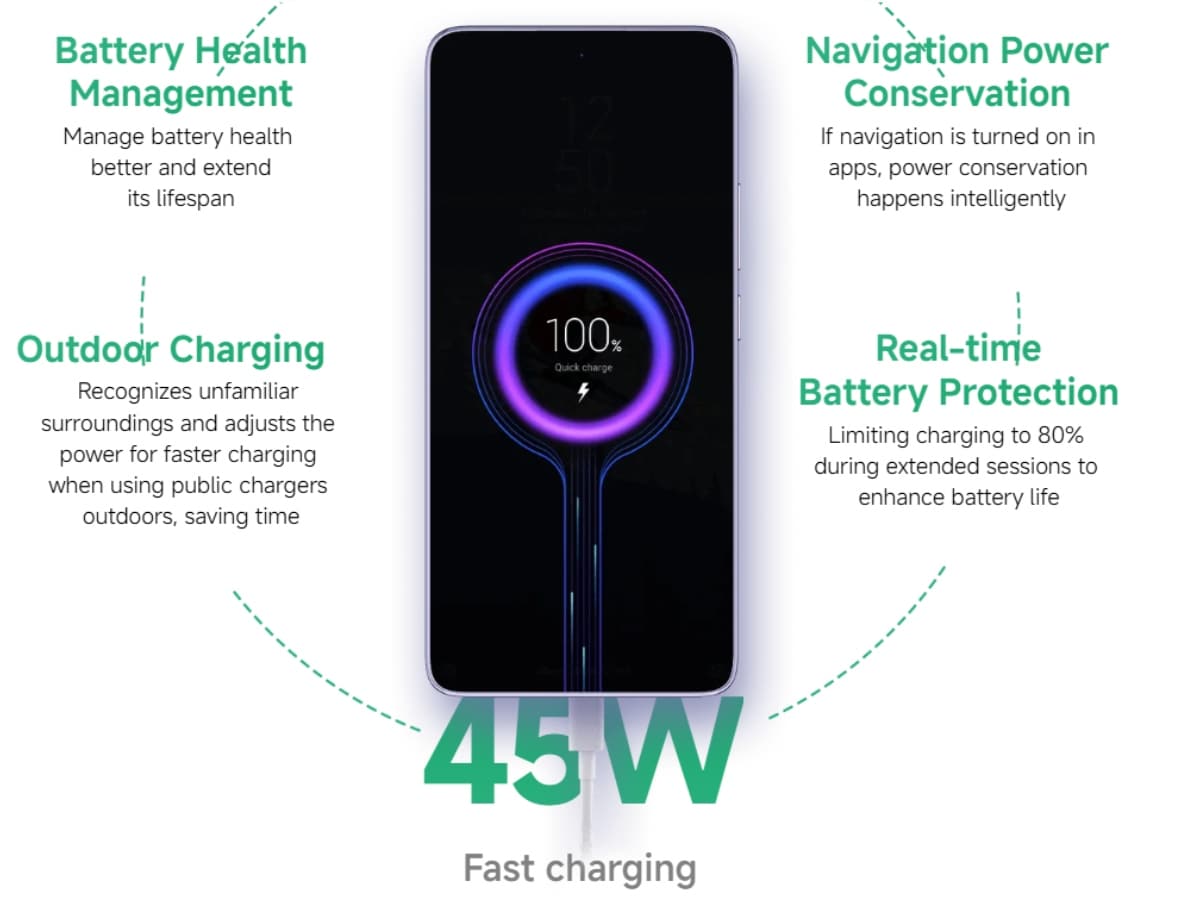 Redmi Note 14 5G में 5110mAh की बैटरी दी गई है, जिसके साथ आपको 45W फास्ट चार्जिंग मिलती है।