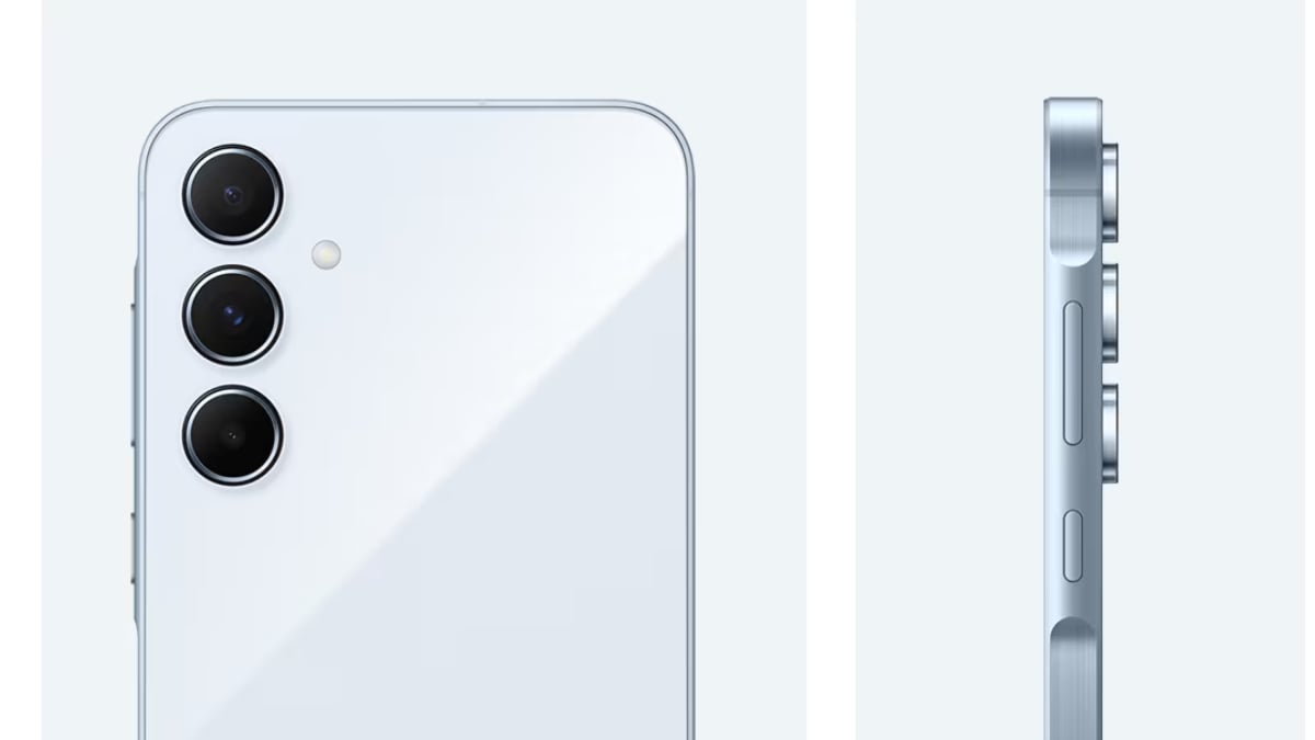 Samsung Galaxy A55 में ट्रिपल रियर कैमरा सेटअप मिलता है। इसमें 50MP का वाइड एंगल, 12MP का अल्ट्रा वाइड और 5MP का मैक्रो लेंस मौजूद है।