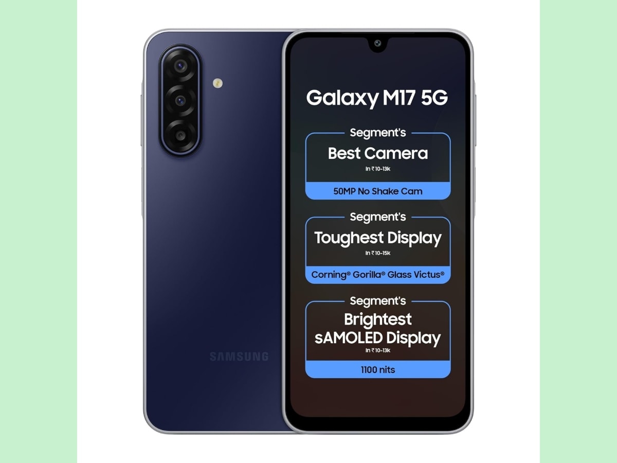 Samsung Galaxy M17 स्मार्टफोन की कीमत 13,999 रुपये है। इस दाम में फोन के 4GB+128GB स्टोरेज वेरिएंट को खरीदा जा सकता है।