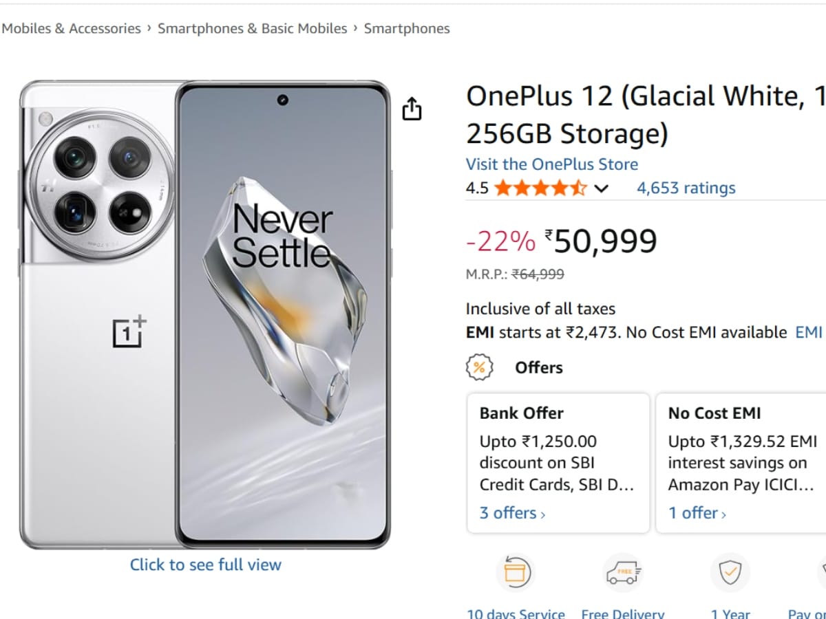 ऑफर की बात करें, तो वनप्लस 12 पर कुल 14000 रुपये का भारी डिस्काउंट दिया जा रहा है। इस छूट के साथ फोन को 50,999 रुपये में घर लाया जा सकता है। इस पर 2,473 रुपये की ईएमआई भी ऑफर की जा रही है।