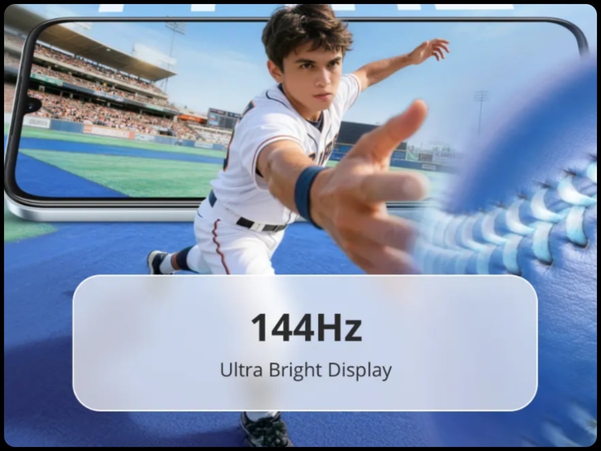 Realme P4 Lite 5G में 6.8 इंच HD+ डिस्प्ले दिया गया है। इस डिस्प्ले में 144Hz रिफ्रेश रेट मिलता है। वहीं, डिस्प्ले का रेजलूशन 720 x 1,570 पिक्सल है। इस डिस्प्ले में 900 Nits पीक ब्राइटनेस मौजूद है।
