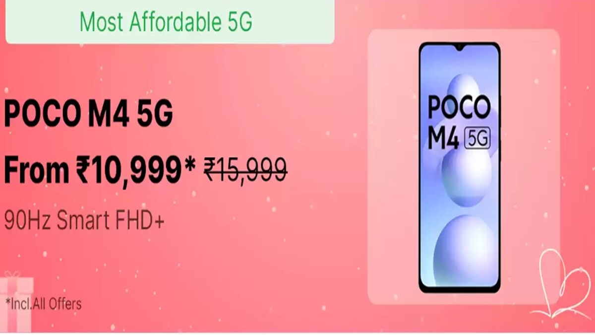 पोको का यह एक 5G Smartphone है। इस फोन में 4Gb, 64GB इंटरनल स्टोरेज और 512जीबी तक का एसडी कार्ड लगाया जा सकता है। इस फोन में 6.58 इंच का फुल एचडी प्लस डिस्प्ले दिया गया है। इसमें 6.58 इंच का HD+ Display दिया है। सेल के दौरान 11999 रुपये वाला ये फोन 10999 रुपये में खरीदा जा सकेगा।