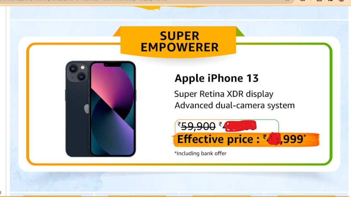 Amazon Republic Day Sale की माइक्रो वेबसाइट के अनुसार, सेल में फोन की शुरुआती कीमत 59,900 की जगह 49,999 होगी। वहीं, बैक डिस्काउंट के साथ इसे 48,999 रुपये में खरीदा जा सकेगा। सेल में SBI बैंक के कार्ड पर 10 प्रतिशत का इंस्टेंट डिस्काउंट मिलेगा।
