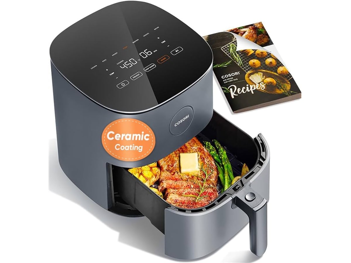 यह एयर फ्रायर 7.5L की बड़ी कैपेसिटी और 1800W पावर के साथ आता है, जो जल्दी और ज्यादा खाना बनाने के लिए अच्छा है। इसमें PTFE-free कोटिंग है, यानी हेल्थ के लिए सुरक्षित है। इसमें 12 प्रीसेट मोड और डिजिटल टच कंट्रोल है। इसकी कीमत ₹9,215 है।