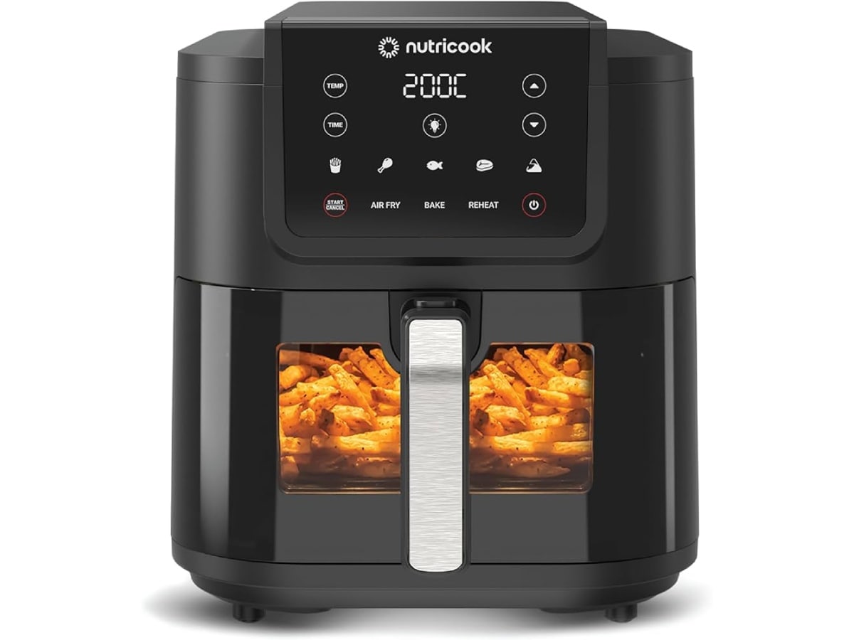 यह एयर फ्रायर 6.2L की बड़ी कैपेसिटी और 1700W पावर के साथ आता है, जिससे खाना जल्दी और अच्छे से पकता है। इसमें Rapid Air टेक्नोलॉजी है, जो खाने को कम तेल (लगभग 90% कम फैट) में कुरकुरा बनाती है। इसमें टच पैनल और कुकिंग विंडो भी है, जिससे आप खाना बनते हुए देख सकते हो। इसकी कीमत ₹9,499 है।