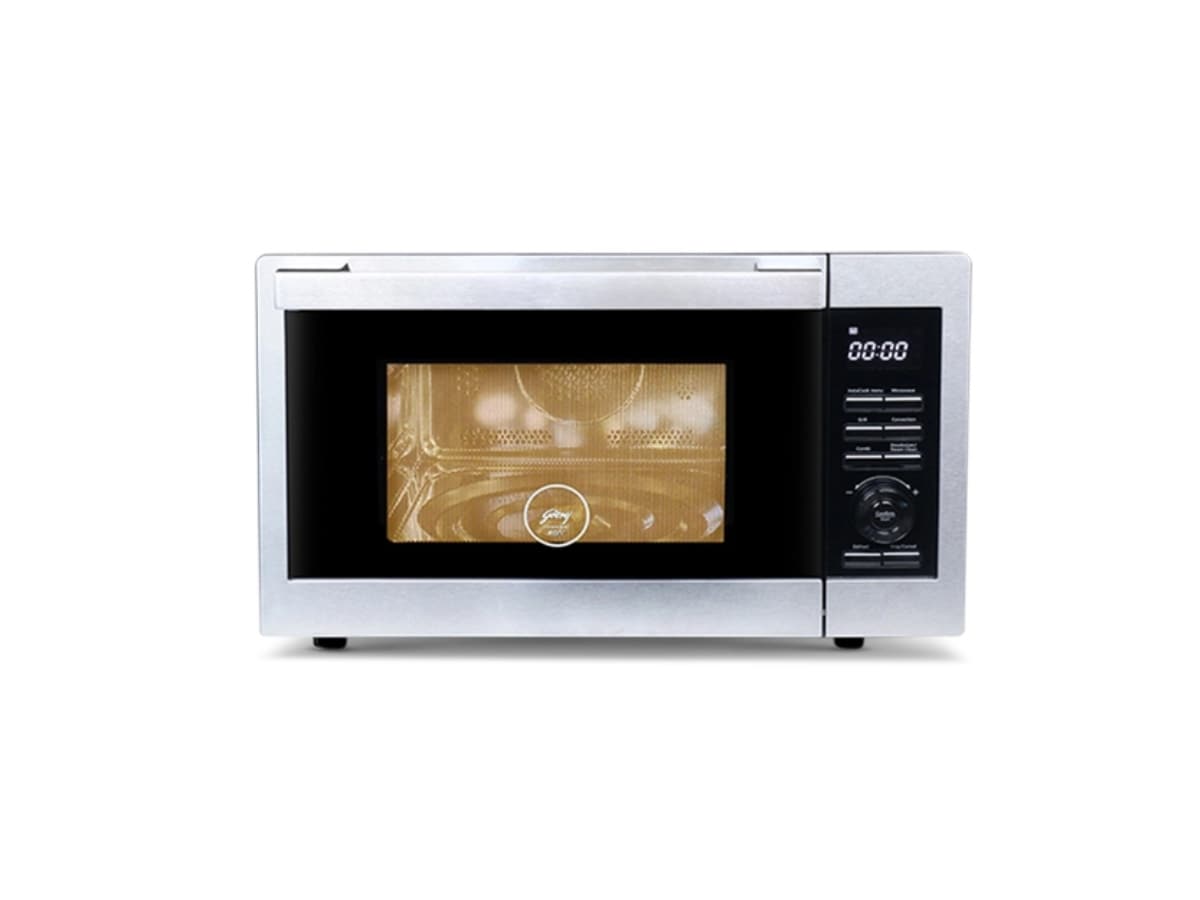 Godrej का 33 लीटर का माइक्रोवेव बेकिंग, ग्रिलिंग, रिहीटिंग और डिफ्रॉस्टिंग सपोर्ट करता है। इसमें टैक्टाइल बटन, जॉग डायल और चाइल्ड लॉक हैं। यह Godrej Instachef ऐप से भी कनेक्ट होता है, जिसमें 450 रेसिपीज और 32 कुकिंग वीडियो मिलते हैं। इसकी कीमत ₹18,990 है।