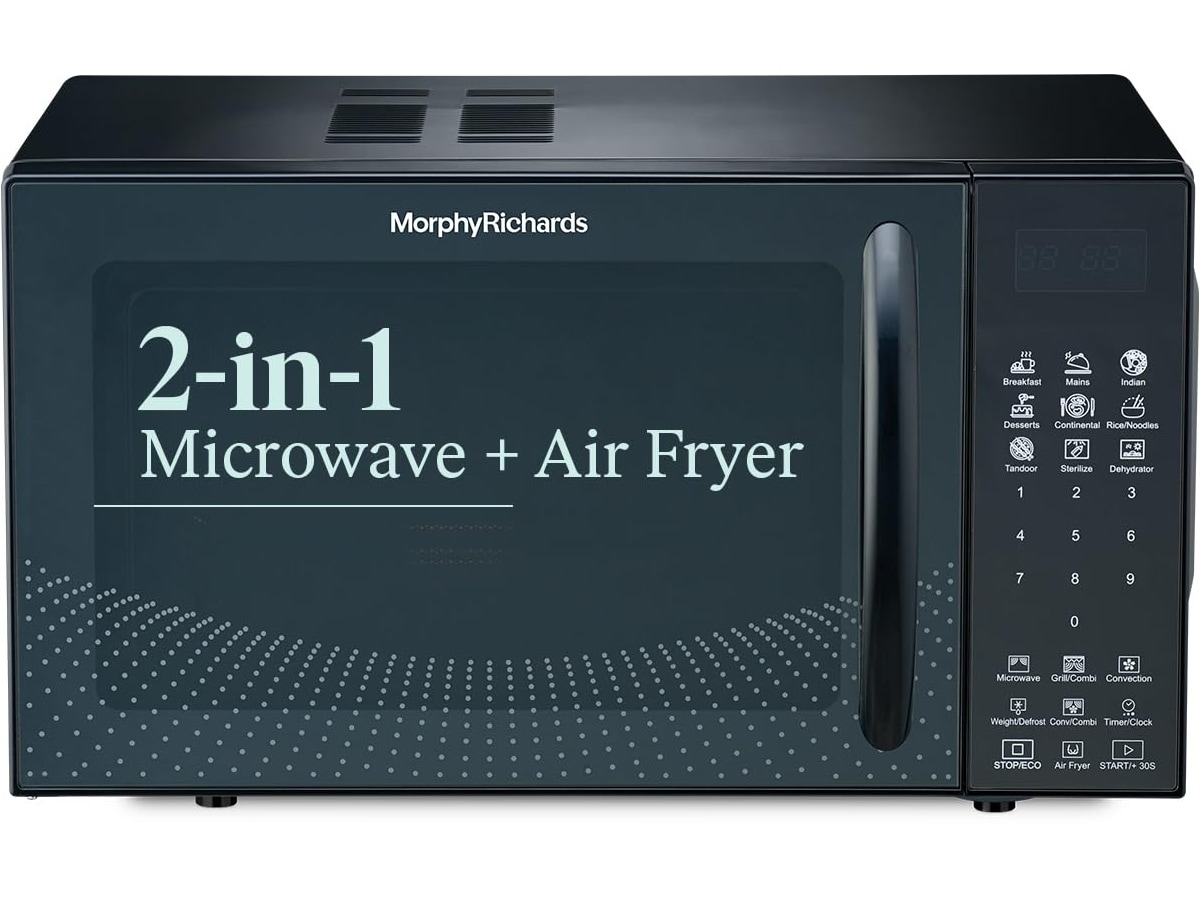 Morphy Richards का 23 लीटर का माइक्रोवेव बेकिंग, ग्रिलिंग, रिहीटिंग और डिफ्रॉस्टिंग सपोर्ट करता है। इसमें इन-बिल्ट एयर फ्रायर और डिहाइड्रेटर फंक्शन भी है। यह 220 ऑटो कुक मेन्यू के साथ आता है और 2 साल की प्रोडक्ट वारंटी मिलती है। इसकी कीमत ₹12,499 है।
