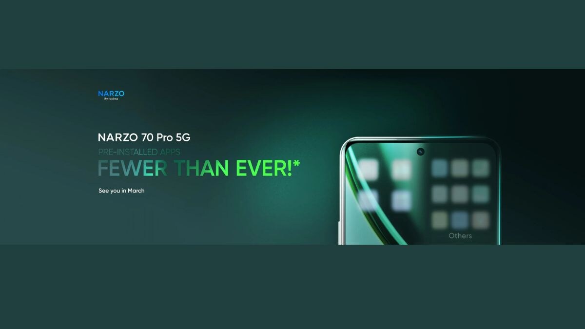 Realme narzo 70 pro फोन की इंडिया लॉन्चिंग टीज कर दी गई है। कंपनी ने कंफर्म किया है कि यह फोन भारत में मार्च महीने में लॉन्च किया जाएगा। फिलहाल इसकी लॉन्च डेट रिवील नहीं की गई है।
