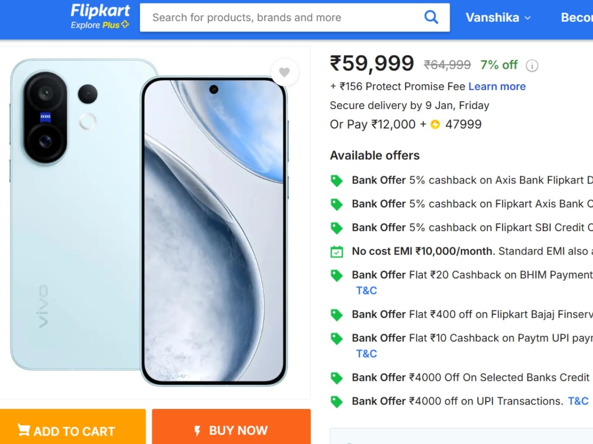 ई-कॉमर्स वेबसाइट फ्लिपकार्ट पर Vivo X200 FE लिस्ट है। हालांकि, इस डिवाइस का केवल 16GB+512GB स्टोरेज वेरिएंट ही मिल रहा है। इसकी कीमत 59,999 रुपये है। इसे Amber Yellow कलर में ऑर्डर किया जा सकता है।