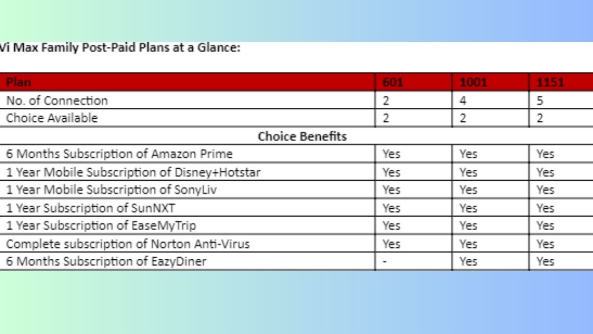 वहीं, मैक्स इंडिविजुअल प्लान के साथ-साथ 601 रुपये, 1001 रुपये और 1151 रुपये की कीमत वाले वीआई मैक्स फैमिली प्लान के साथ भी ये बेनिफिट मिलेंगे। अब यूजर्स अपने जरूरत औ पसंद के अनुसार प्लान में मिल रहे बेनिफिट का मजा उठा सकते हैं।