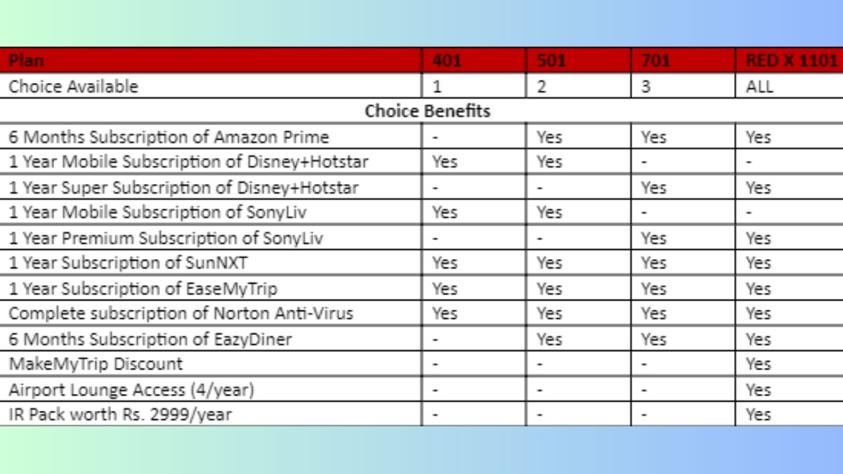 - इन Choice प्लान्स के साथ यूजर्स अपनी पसंद से बेनिफिट सिलेक्ट कर पाएंगे।