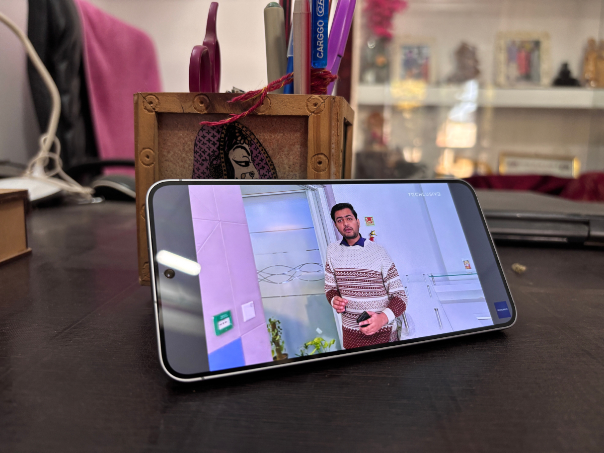 सैमसंग गैलेक्सी एस 25 में AOD (Always-On Display) से लैस फ्लैट डिस्प्ले मिलता है। इसका साइज 6.1 इंच है और बेजल बहुत पतले हैं। स्क्रीन के चारों कोने कर्व्ड हैं। प्रोटेक्शन के लिए Corning Gorilla Glass Victus 2 लगाया गया है। इसके सेंटर में पंच-होल कटआउट है। 120Hz रिफ्रेश रेट होने से स्क्रीन मख्खन की तरह काम करती है। इसकी विजिबिल्टी भी बढ़िया है। इसका इस्तेमाल तेज धूप में आसानी से किया जा सकता है।
