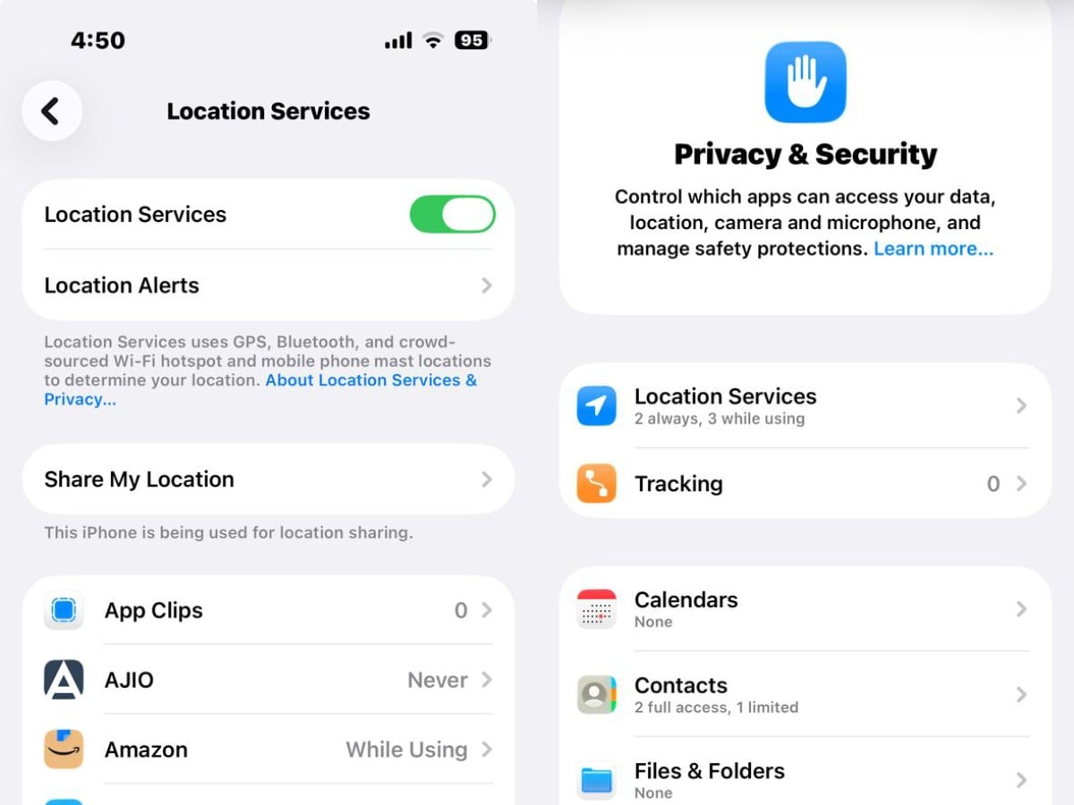 आप चाहें तो इन सभी ऐप्स के लोकेशन, कैमरा और माइक्रोफोन परमिशन खुद नियंत्रित कर सकते हैं। इसके लिए जाएं Settings > Privacy & Security में। यहां से आप देख सकते हैं कि कौन-से ऐप्स को Location Services, Microphone, और Camera की अनुमति मिली हुई है। किसी भी ऐप पर टैप करके आप तय कर सकते हैं कि उसे ‘Never’, ‘While Using the App’, या ‘Always’ एक्सेस देना है या नहीं। साथ ही ‘Precise Location’ बंद करके आप चाहें तो ऐप को केवल आपकी लगभग लोकेशन तक सीमित कर सकते हैं। इसी तरह ‘Tracking’ सेक्शन में जाकर आप यह देख सकते हैं कि कौन-सा ऐप आपकी ऑनलाइन एक्टिविटी को ट्रैक कर रहा है। अगर चाहें तो ‘Allow Apps to Request to Track’ को बंद करके सभी ऐप्स की ट्रैकिंग रिक्वेस्ट रोक सकते हैं।