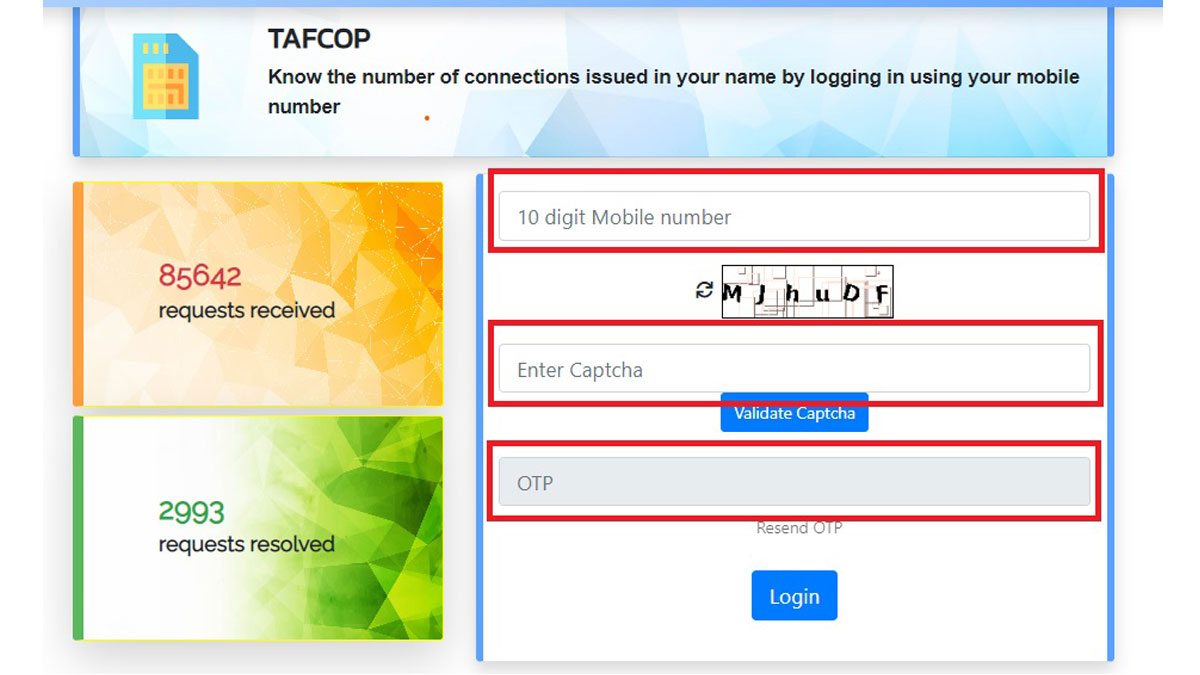- सबसे पहले आपको TAFCOP संचार साथी पोर्टल (tafcop.sancharsaathi.gov.in/telecomUser/loginPage) पर जाना होगा