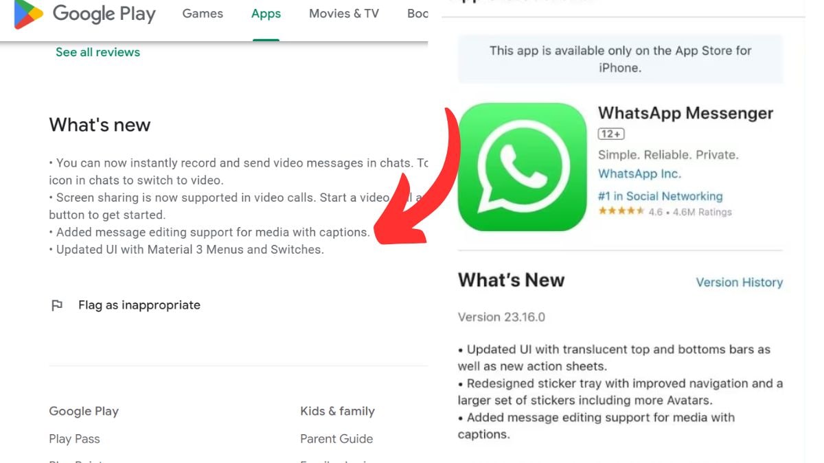 Play store पर WhatsApp का लेटेस्ट वर्जन अपडेट के लिए उपलब्ध है। इस लेटेस्ट वर्जन के साथ कई नए फीचर्स आए हैं। चैंजलॉग की मानें, तो अब यूजर्स व्हाट्सऐप मैसेज के साथ-साथ व्हाट्सऐप मीडिया फाइल्स कैप्शन को भी एडिट कर सकेंगे। जैसे कि हमने बताया यह फीचर पहले केवल आईओएस यूजर्स के लिए उपलब्ध था, लेकिन अब इस लिस्ट में एंड्रॉइड यूजर्स भी शामिल हो गए हैं। और पढें: WhatsApp के इंटरफेस में हुआ बड़ा बदलाव, Liquid Glass डिजाइन वाला आया अपडेट