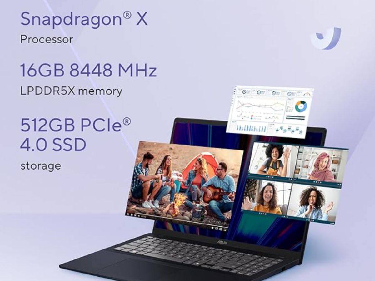 ASUS Vivobook 16 X1607QA-MB049WS costs Rs 65,990 with several bank offers. The laptop is powered by Snapdragon X X1 26 100 Processor along with 16GB LPDDR5X RAM and 512GB SSD. It features 16.0-inch, FHD+ (1920 x 1200) display with 16:10 aspect ratio, 60Hz refresh rate, 300nits brightness.