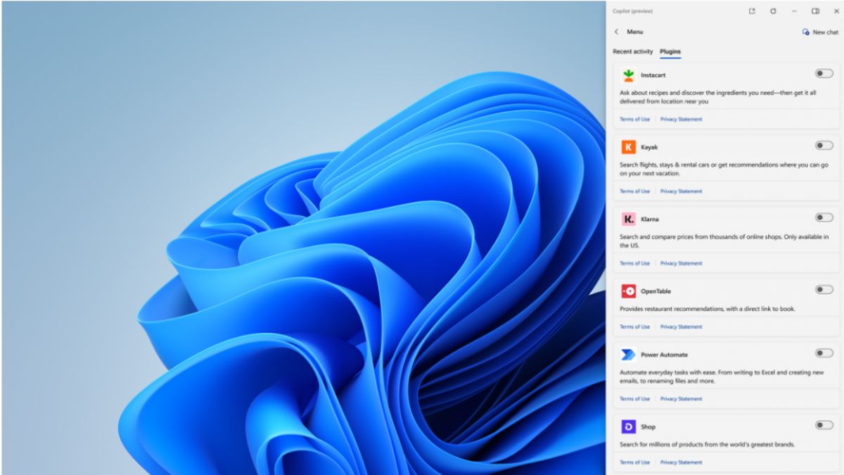 Copilot is getting support for plugins. These plugins will let users make dinner reservations, swap shopping items in grocery apps and even buy items from online retailers. Microsoft says with Copilot in Windows, users can now use plugins for easy access to some of their favorite applications. At the moment, this feature is available for OpenTable and Instacart. Over the next month, the company plans to expand the support to more platforms such as Shopify, Klarna and Kayak.
