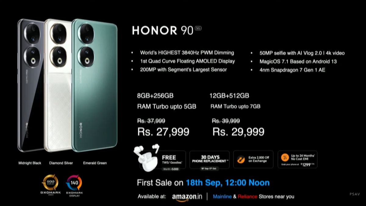 - The Honor 90 5G will go on sale in India starting September 18.