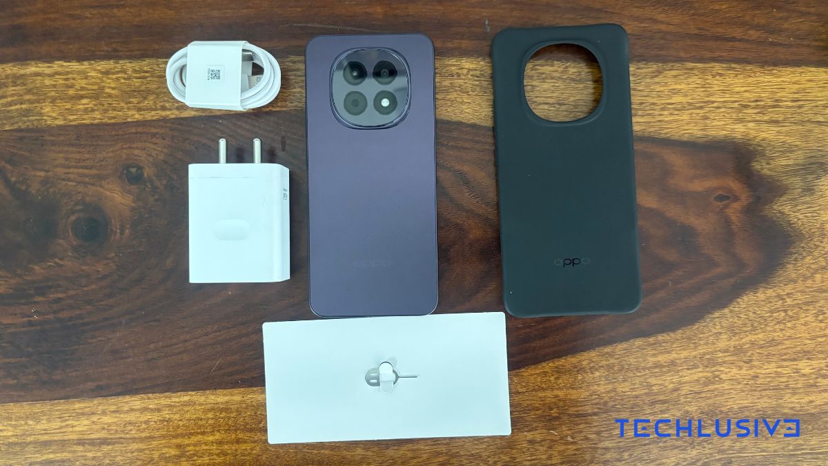 The OPPO F295G offers a standard yet complete unboxing experience. Inside the box, you get the phone, a 45-watt SUPERVOOC charger, a cable, a protective case, and a SIM tool. You have pretty much everything you need to get started with the device.