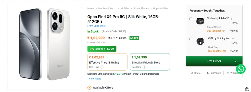 Oppo Find X9 Series is all set to launch tomorrow in India at 12:00 PM IST. And just ahead of the launch, its price has been leaked again! Just a few days back, tipster Paras Guglani had shared the expected price for the Oppo Find X9 Pro. Now, a retailer’s website has shed light on it again. Also Read: OPPO Reno 15 Series India Launch Timeline Revealed; Price And Specs Leak Ahead Of Debut