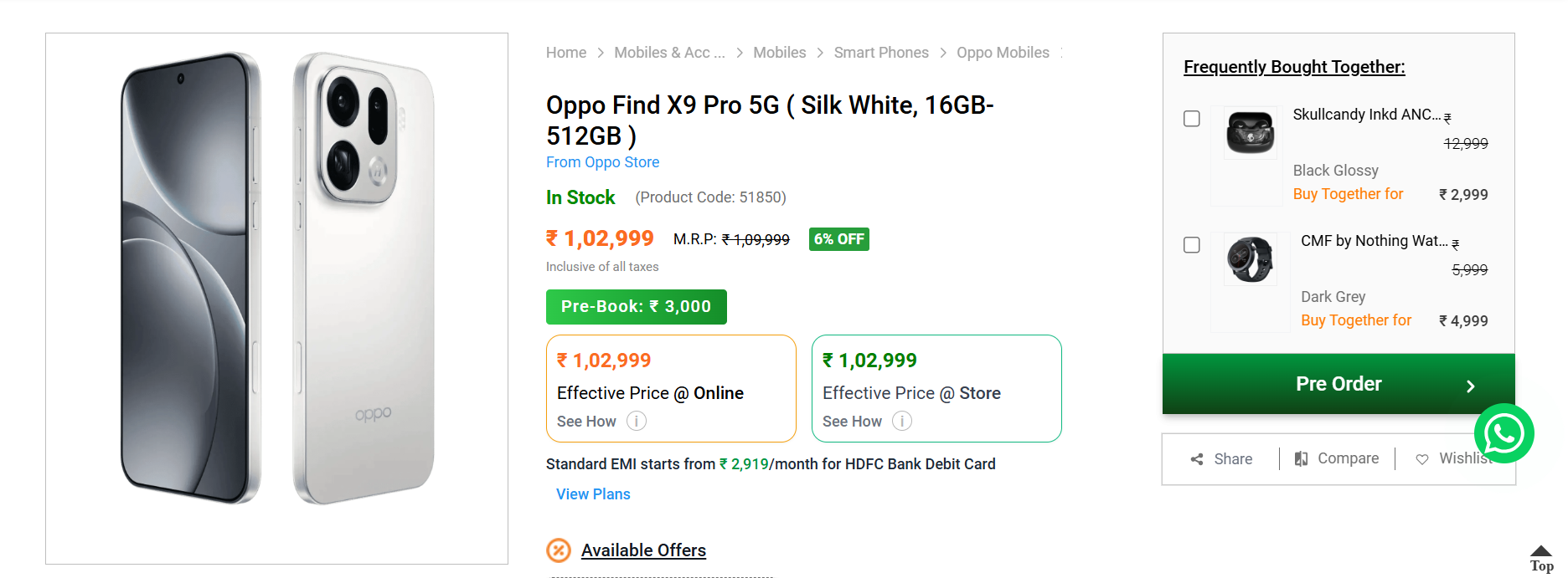 According to the listing, the Oppo Find X9 Pro could cost Rs 1,09,999 for its single 16GB + 512GB model. Meanwhile, the Oppo Find X9 may start at Rs 79,999 for the 12GB + 256GB variant, and the 16GB + 512GB variant is listed at Rs 89,999.