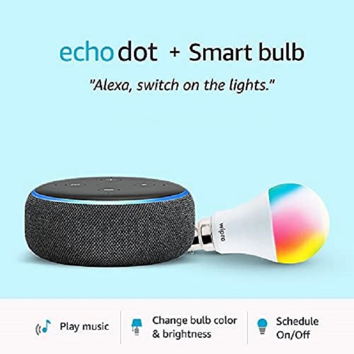 Echo Dot (Black) Combo with Wipro 9W Smart Color Bulb