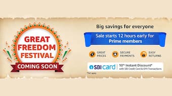 The Amazon Great Freedom Festival sale will be hosted for five days. It will begin on August 5 and end on August 9. As usual, Prime members will be able to access the deals 12 hours early. Amazon is aggressively advertising deals that it will categorize into different segments such as Kickstarter deals, Deals Under Rs 999, Price Crash Store, Grand Opening Deals, 8 PM Deals, and BlockBuster Deals.