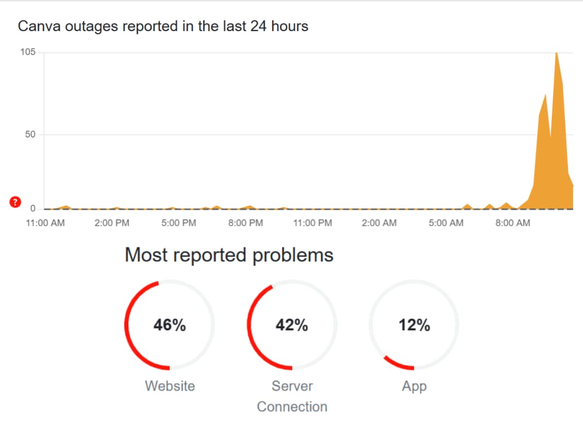 According to the website outage tracker, over 100 reports were from India itself with 46 per cent users reporting problems with the website, while 42 per cent reports highlighted issues with server connection and 12 per cent related to the app. Users were unable to upload images while the server connection issues resulted in delays and disruptions, affecting those who rely on Canva for time-sensitive design work.