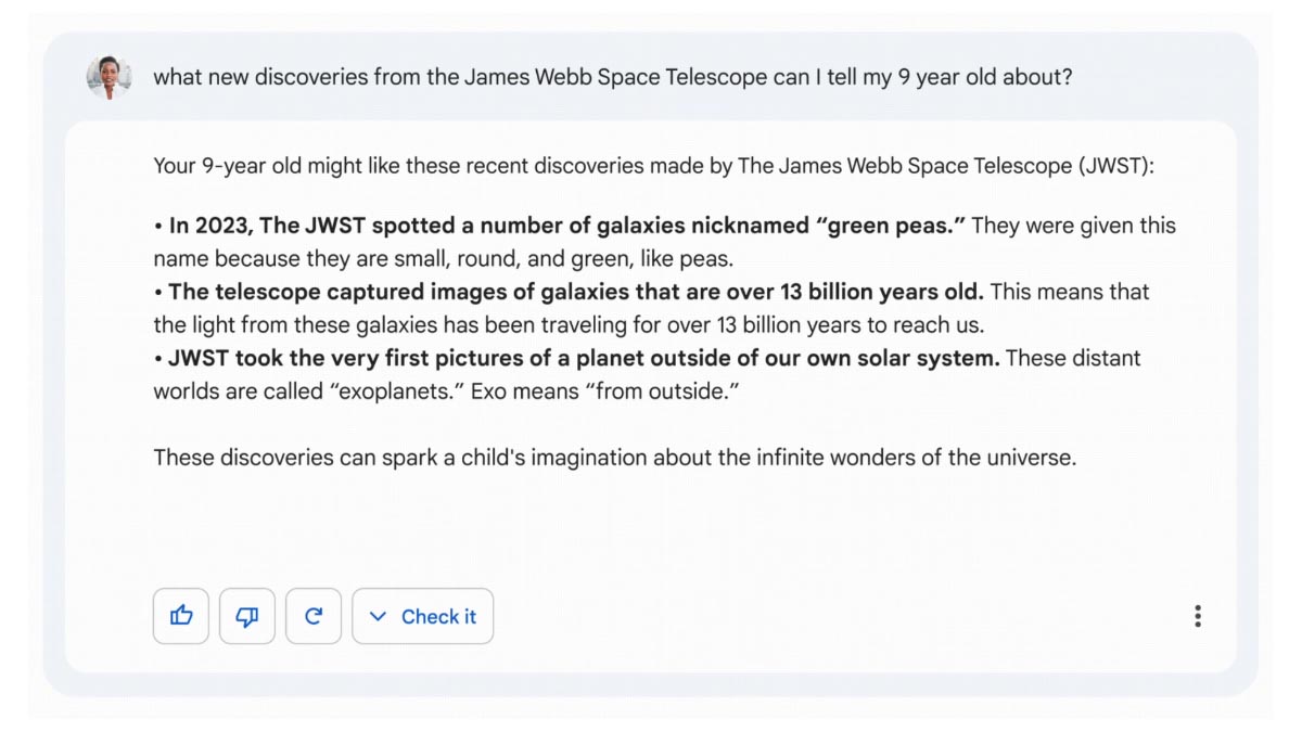 Bard will also help simplify complex topics for you. In the blog post, Google demonstrated how bard can explain new discoveries from NASA's James Webb Space Telescope to a 9-year-old.