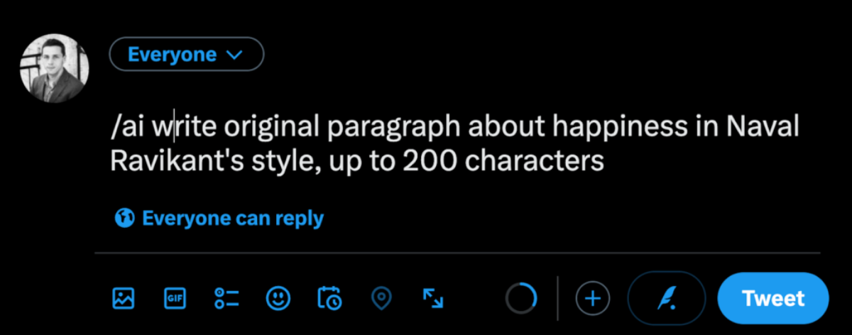 This command is "/ai" followed by what you want the AI assistant to achieve. For example, adding /ai before a task in the text area inside Twitter like this: