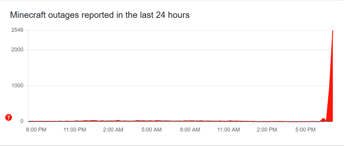 Minecraft hit a major outage with 2500+ user reports, causing server, login, and gameplay failures.