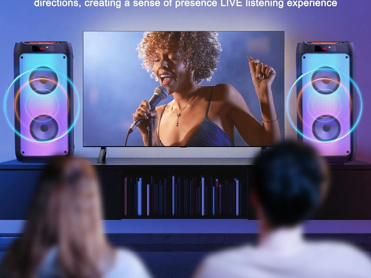 The JYX Party DJ speaker offers portable sound with built-in subwoofers for strong audio output. It provides up to 8 hours of playback and includes dual microphones for karaoke. The speaker supports Bluetooth, USB, TF card, TWS, and AUX connectivity along with mic and guitar input. It is suitable for home parties and small stages, and is priced at Rs 17,289.