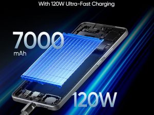 Realme GT 7T boasts 7000mAh battery capacity that charges the phone 50% in 15 minutes. It comes with 120W