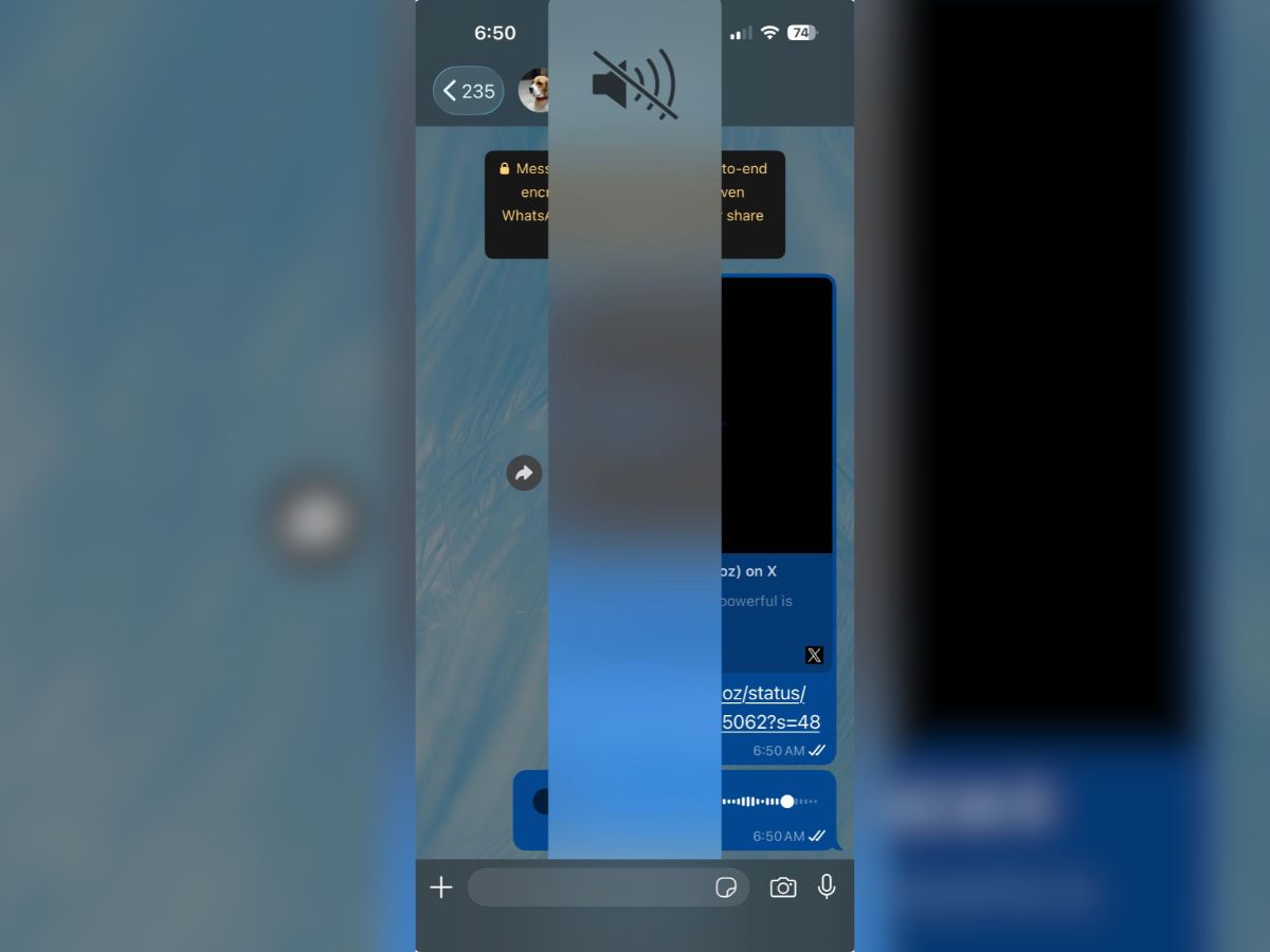 Many users took to social media platform X (formerly Twitter) to report the unexpected glitch. Techlusive was also able to replicate it while using the mute feature. When listening to a voice note on WhatsApp, pressing the volume down button to mute the iPhone brings up an oversized mute indicator in the middle of the chat window that stretches across the screen vertically.