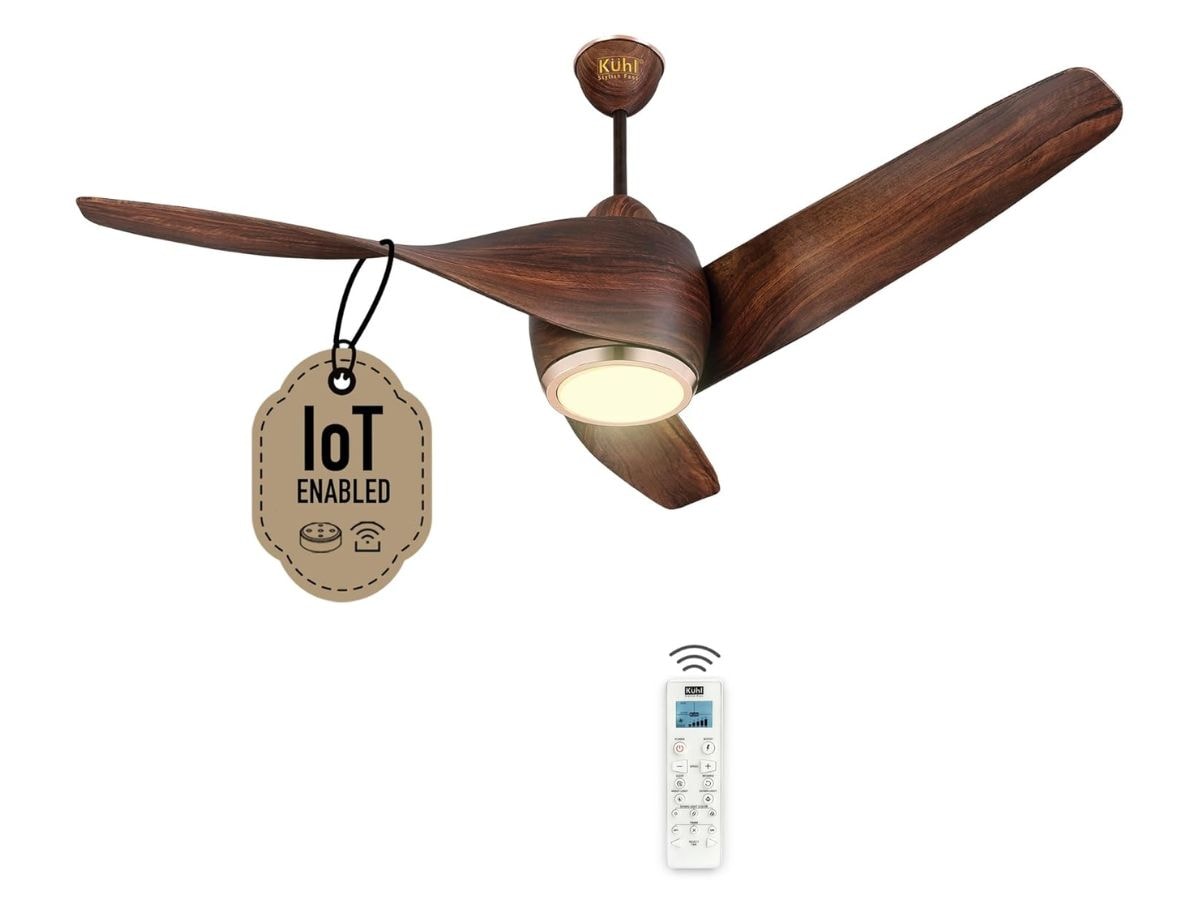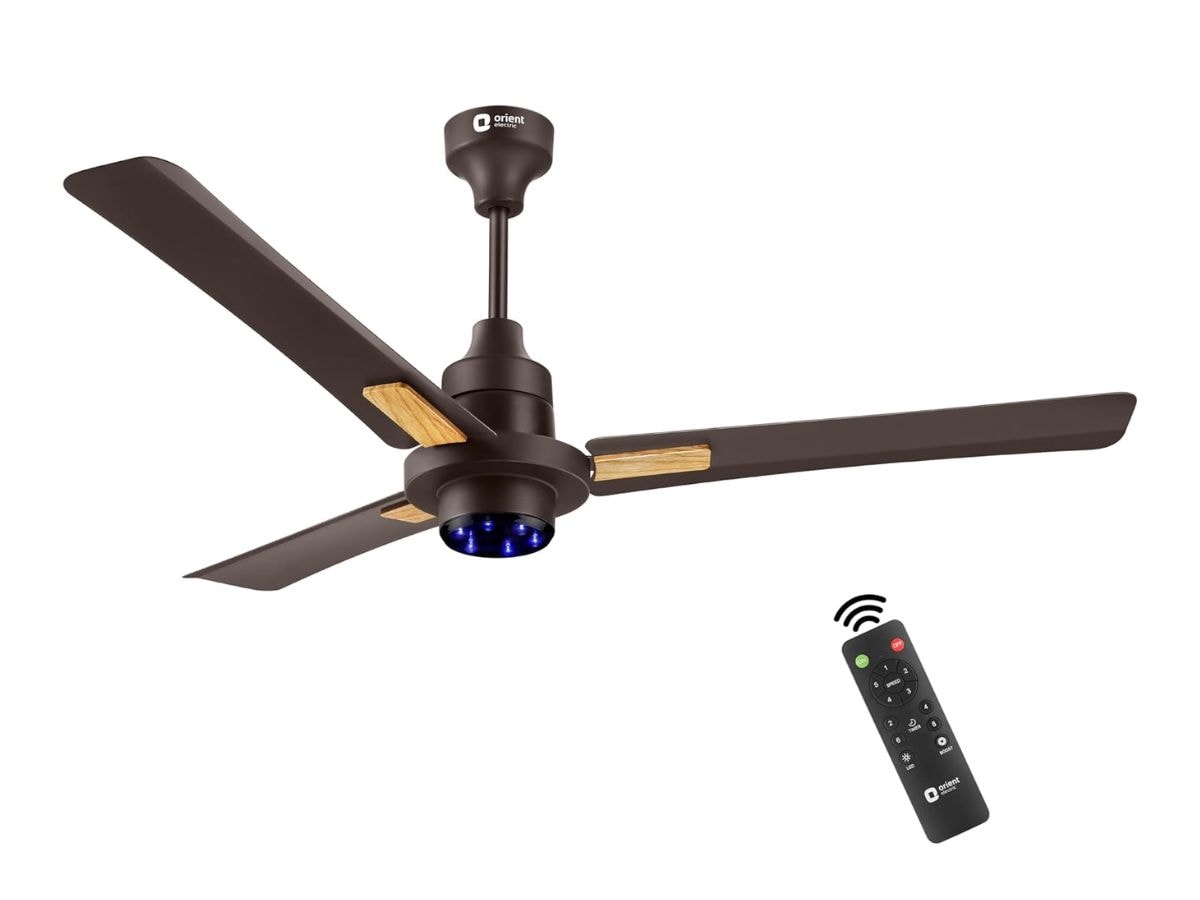 One of the lowest at 28W with 220 CMM airflow. Supports remote, app, and voice control. Includes boost and timer modes. Runs at 57dB and comes with 3-year warranty. Priced around Rs 4,999.