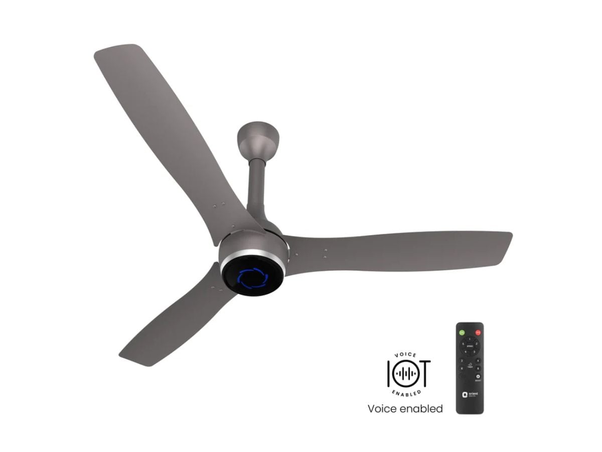This 32W BLDC fan offers 225 CMM airflow. Supports app, remote, and voice control. Includes boost, timer, sleep, and breeze modes. Comes with 5-star rating and 5-year warranty. Price is around Rs 5,549.