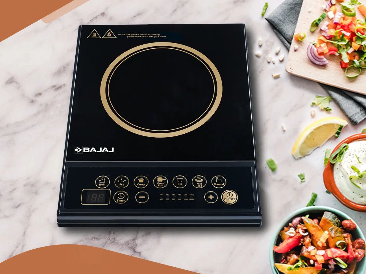 The Bajaj IRX 220F Infrared Induction Cooktop comes with 2200 W power for quick cooking. It features 11 power levels and 3 preset menus for versatile use. The cooker has feather touch controls and a digital display for easy operation. Price: Rs 3,699.